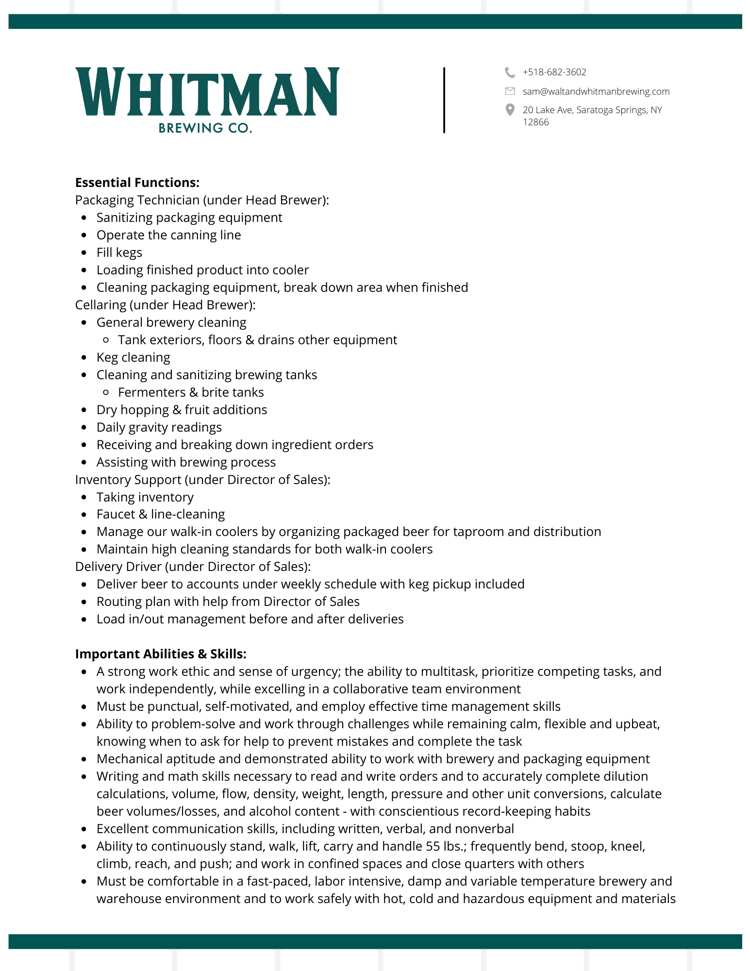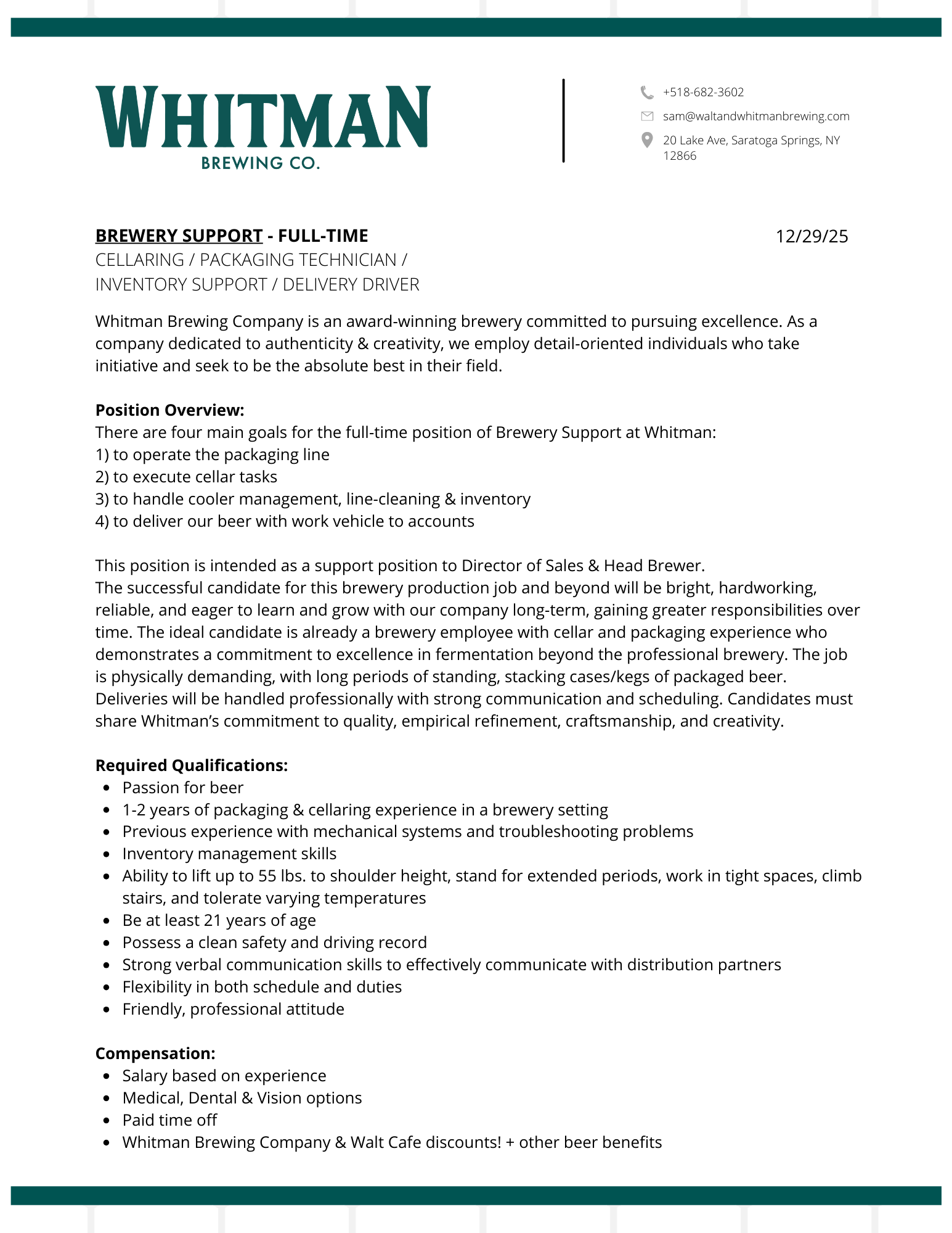 BREWERY SUPPORT - FULL TIME